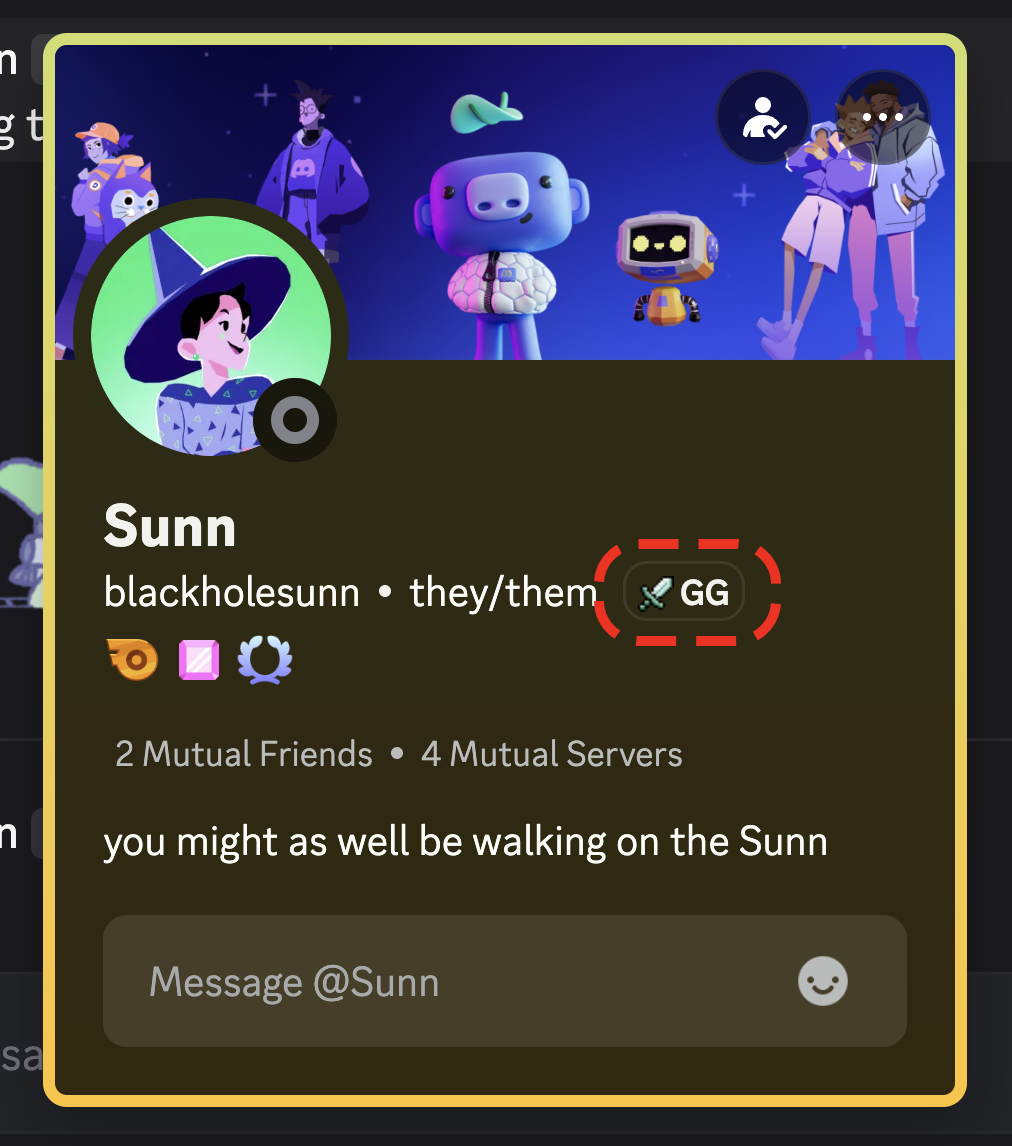Is there a particular server or community that you spend the MOST time on that’s open to new members? Show it off with a Server Tag! Server Tags hang out next to your display name wherever you post, and directly on your profile.